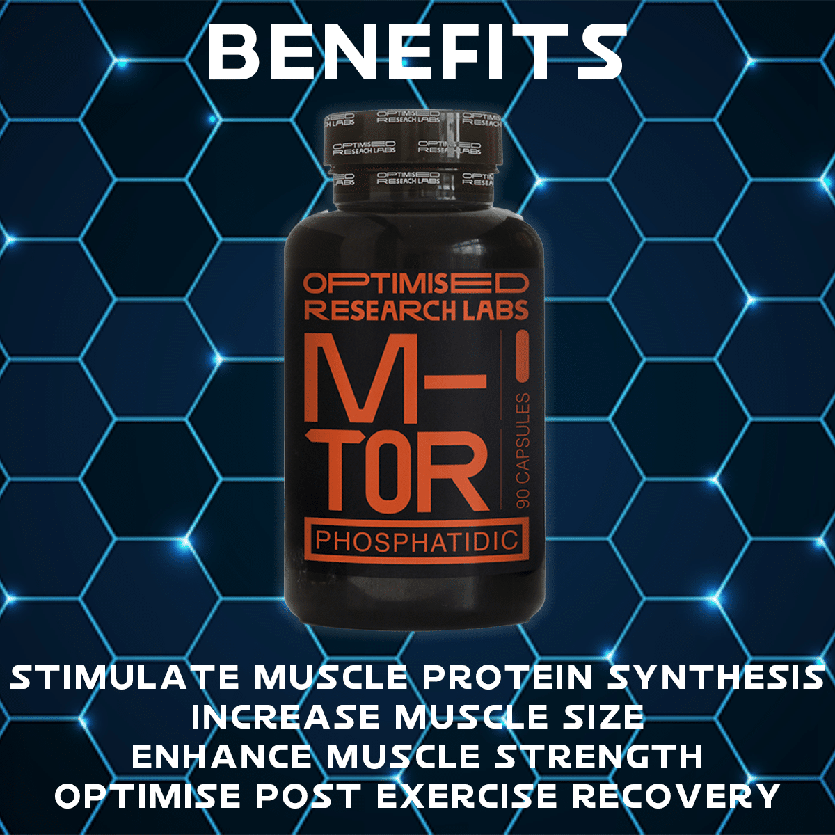 m-TOR is a protein that regulates cell growth, protein synthesis, and other essential cellular processes. It acts as a central hub for coordinating responses to nutrient availability and energy levels within the cell. When activated, m-TOR initiates a cascade of events that lead to increased protein synthesis. This activation of m-TOR signalling is essential for mechanically induced changes in skeletal muscle mass. Exposing muscles to increased mechanical loading, such as through strength training, stimulates muscle protein synthesis leading to increases in muscle size and strength. So, while resistance training induces mechanical stress on muscles, which naturally activates the m-TOR pathway, supplementation with Phosphatidic Acid amplifies this effect, leading to even greater activation of m-TOR and, consequently, greater muscle protein synthesis leading to greater muscle repair and growth.