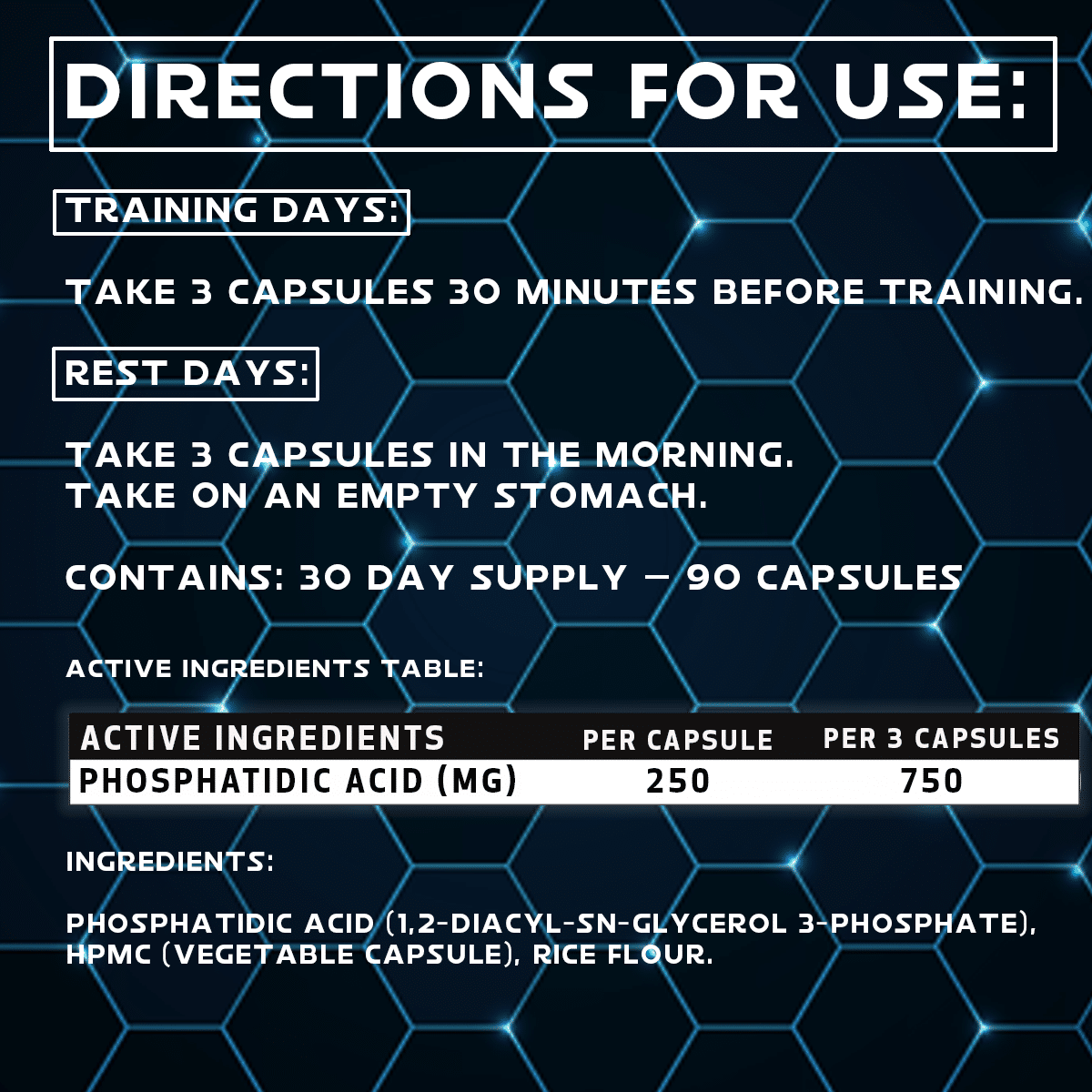 TRAINING DAYS: 3 Capsules 30 minutes before training.